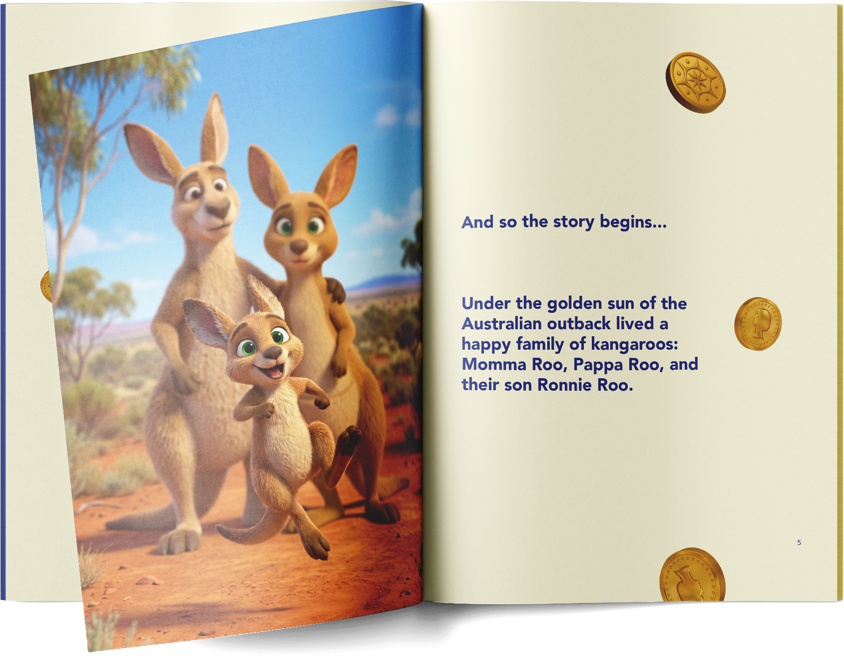 Set in the Australian outback, the story follows Ronnie Roo and his family as they navigate the loss of Momma Roo. Through a gentle and imaginative idea that loved ones in heaven can use magical tokens to send small signs of comfort to those on Earth, the story gives children permission to remember, imagine and feel close to someone they miss.